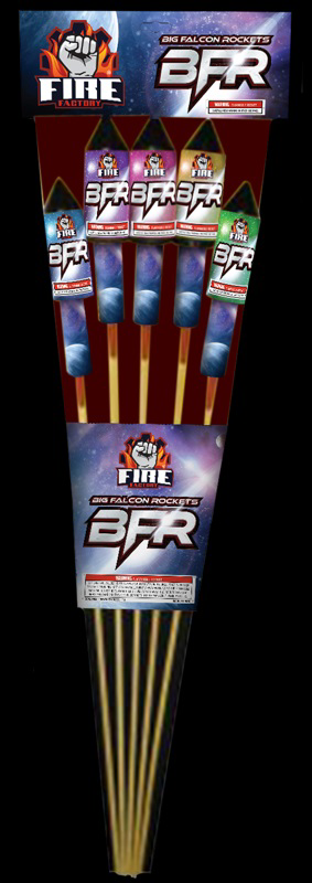 Two big and three jumbo rockets make up this excellent five-piece Big Falcon Rocket kit. Riding a soft charcoal tail high into the sky, each rocket bursts beautifully into a symmetrical aerial display with varying colors and effects.