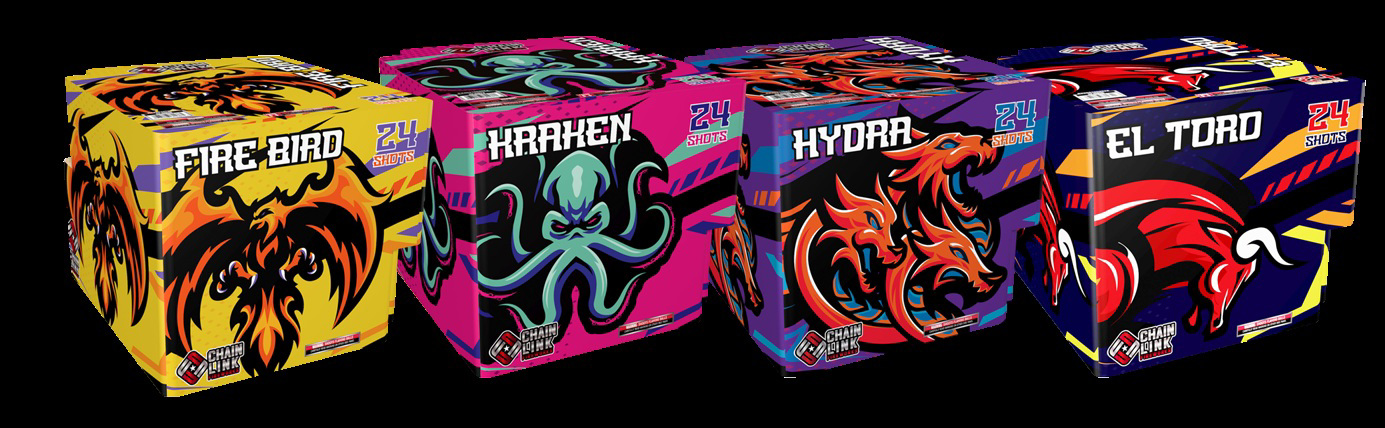 Chain Link is a new brand, new shape, and a new way to shoot fireworks! These items can be lit individually or pushed together and they will ignite one after the other. These items can also be linked with any other Chain Link items.