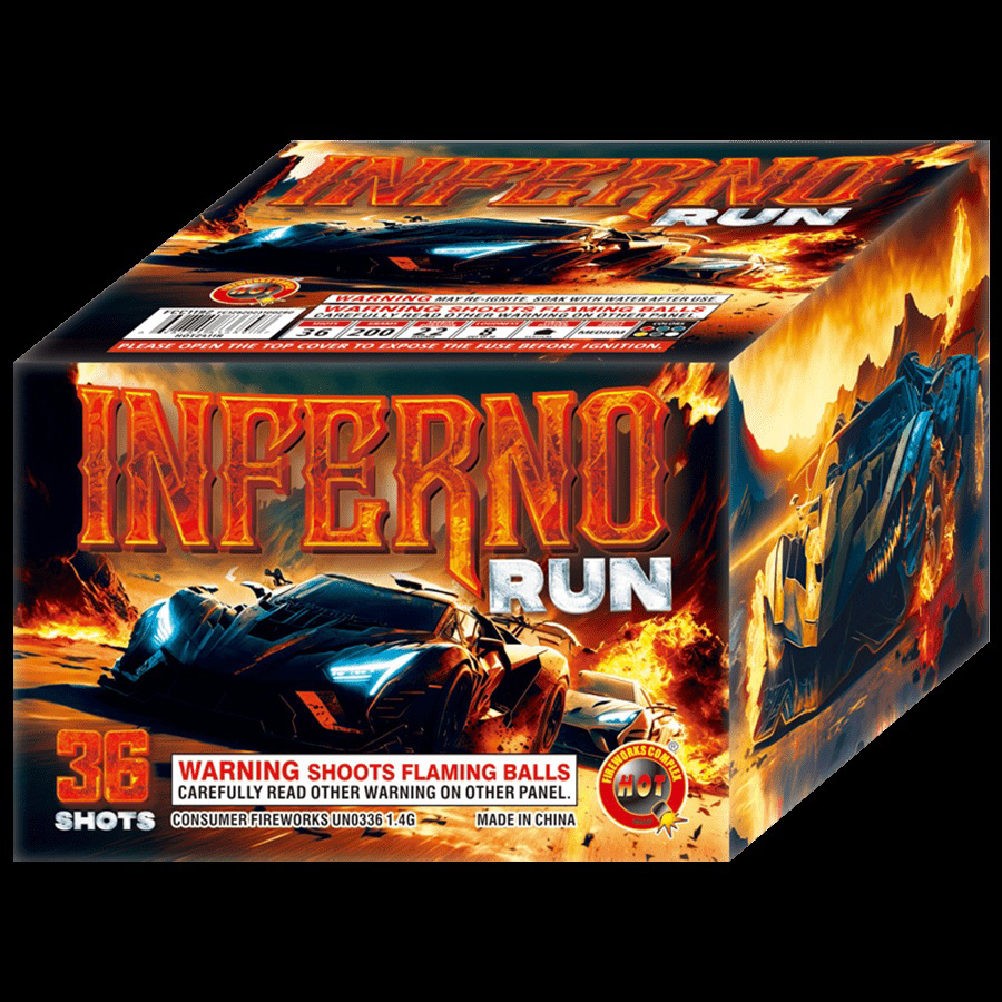 Prepare for the Wasteland Warriors to rage across the sky. Inferno’s engines roar to life with a barrage of red, green, blue, lemon, and purple stars to white strobe. These vibrant bursts are chased by a fierce storm of crackling mines throughout the explosive journey.