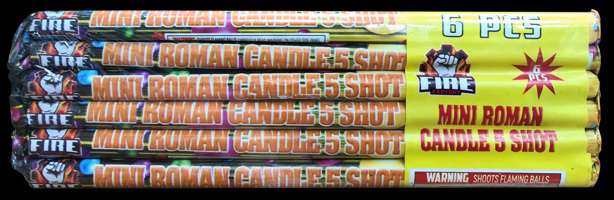 A fun value pack of 6 mini 5 ball roman candles.